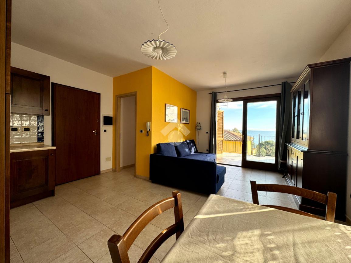 Internamente è composto da un luminoso soggiorno dotato di angolo cottura e con uscita su un'ampia terrazza, con splendida vista sul mare.