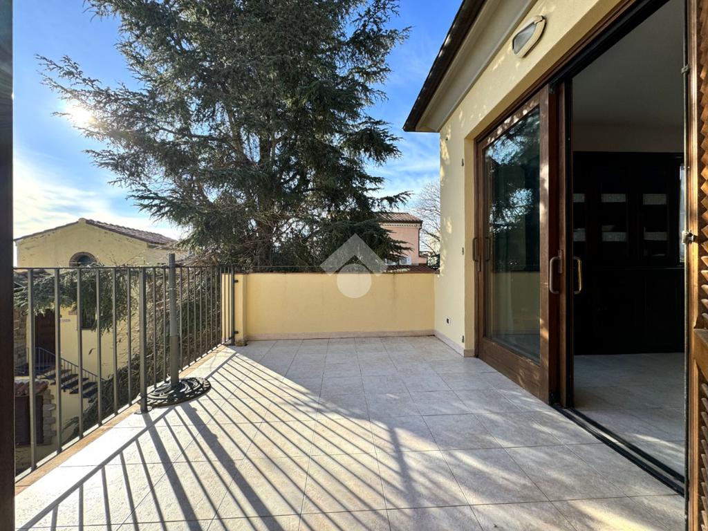 Una comoda scala esterna ci conduce al piano primo, dove la soluzione si sviluppa su unico livello.