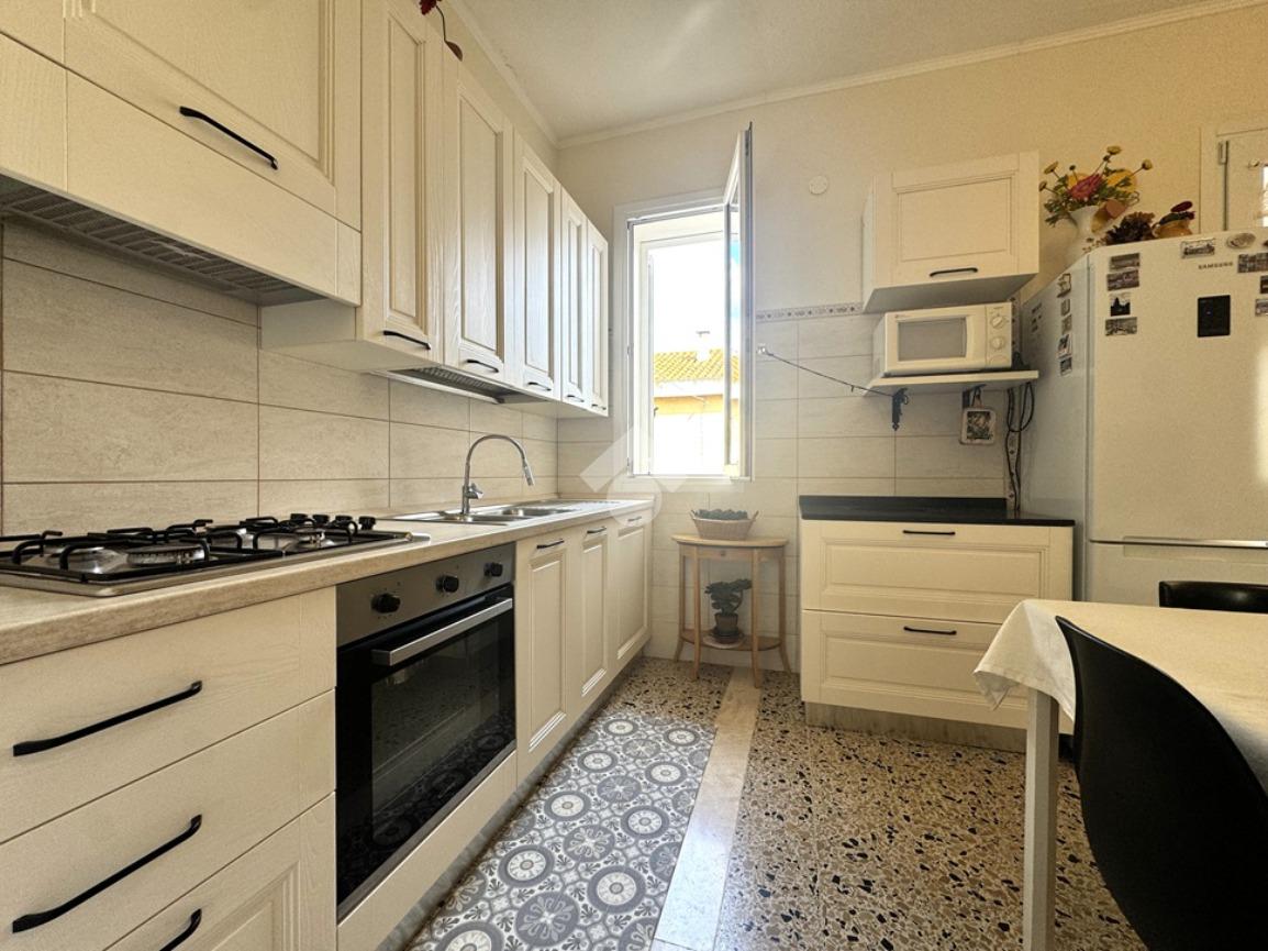 parzialmente ristrutturato. Con ingresso indipendente, salita una comoda scala esterna con arrivo su balcone, si raggiunge il piano primo e ultimo dello stabile. L'ingresso dell'immobile porta a una luminosa zona giorno che ospita la