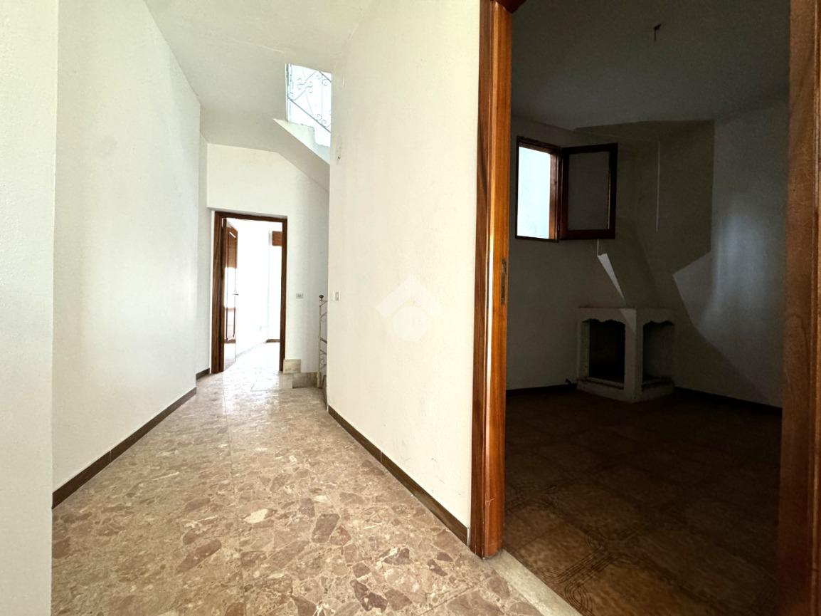 Internamente, varcata la soglia, ci si trova in un'ampia zona giorno con camino adiacente alla quale ci sono un piccolo cucinotto e il bagno di servizio al piano terra: separato da un disimpegno, e con ingresso indipendente dall'esterno, completa il piano terra il soggiorno. Delle comode scale in muratura, posizionate al centro dell'immobile, portano al piano primo in cui trovano spazio le tre camere da letto collegate da un lungo corridoio: a completare il piano primo il secondo bagno e un balcone. L'immobile si presenta in stato manutentivo da rivedere e viene venduto privo di arredo.. La soluzione si consiglia in particolar modo a chi cerca una casa da personalizzare, indipendente da condomini e di buona metratura.