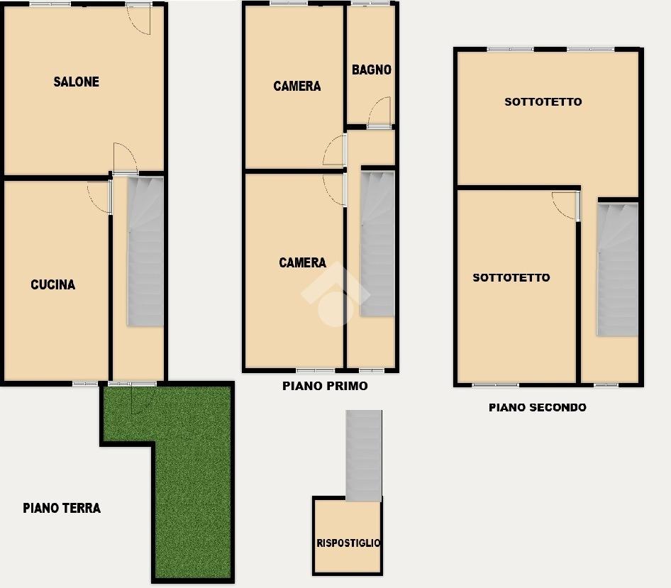 Varcata la soglia di ingresso con affaccio diretto sulla via, si viene accolti da un ampio soggiorno con accogliente cucina abitabile separata e dotata di camino. Il piano terra, presenta un secondo ingresso dalla via parallela attraverso un cortile privato sopra il quale è presente un ripostiglio raggiungibile tramite scala esterna.